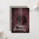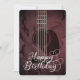 Cartão de aniversário personalizado com brandy quente e polígonos de noz com guitarra acústica e "Feliz Aniversário" em bela tipografia.