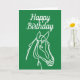 A carta de aniversário do Equine Happy para o amante dos cavalos. Cartões de saudação personalizados para cavaleiros, amigos, colegas de trabalho, família, filho, filha, marido, mulher, pai, namorado, chefe, parceiro comercial, crianças, instrutor, professor, amigo, neto, agricultor, etc. Desenho elegante de arte de linha. Tamanho extra grande e grande disponível também. Perfeito para fãs equestres. Enviou este cartão físico real diretamente online da empresa de impressão Zazzle ao destinatário.