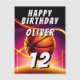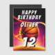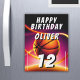 Ímã de Cartão de Aniversário Feliz Esportes Basquetebol. Este design moderno tem o texto "Feliz aniversário", um nome personalizado, idade e uma bola de basquetebol em um fundo vívido e vibrante. O tema de basquetebol torna-o perfeito para o aniversário de um fã de basquetebol. Personalize com seu nome e idade.