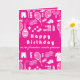 Cartão de aniversário cor-de-rosa e tênis branco dobrado com texto personalizado na frente. O texto da 3ª página é totalmente personalizável. Tudo que precisa é assinar na base e o único cartão de aniversário está pronto para fazer alguém sorrir. O texto na última página também é personalizável ou você pode excluí-lo e deixá-lo vazio.