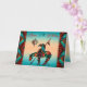 Personalize este Cartão de Aniversário Fim de Trilha Único "Um de Uma Espécie"! Ele apresenta um Índio Fim de Trilha e Cavalo em um Fundo de Pôr do Sol Turquesa e Laranja... Rodeado por Bordas Turquesa, Preto e Laranja! "Feliz 50º Aniversário"!