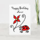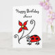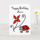 Desenho animado fofo de uma joaninha usando salto alto e com blush em forma de coração sob uma flor vermelha. O cartão tem um belo fundo branco minimalista. Personalize facilmente este cartão editando o texto do modelo na frente e no verso. Obrigado por ver meus designs!