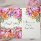 Celebre um aniversário com uma beleza floral atemporal. Este cartão de aniversário apresenta uma luxuriante composição em aquarela de peônias rosa e rosas coral, emoldurada por folhagens suaves para um visual elegante e feminino. O estilo pintado à mão e as flores vibrantes criam um design caloroso e alegre que parece ao mesmo tempo clássico e moderno.