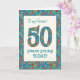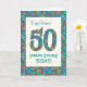 Um Cartão de Aniversário específico da Idade bonito para um Amigo de Cinquenta anos, com o número 50 e a fronteira preenchida com um padrão retrorfloral colorido num fundo de chá. O padrão floral é parte da coleção 'Impressão de avó' Posh & Painterly, de uma colagem de papel pintada manualmente por Judy Adamson. Este design ajustado todos os tamanhos da placa de saudação.