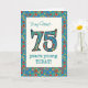 Um Cartão de Aniversário específico da Idade bonito para um Amigo de Setenta e cinco anos, com o número 75 e a fronteira preenchida com um padrão retrorfloral colorido num fundo teal. O padrão floral é parte da coleção 'Impressão de avó' Posh & Painterly, de uma colagem de papel pintada manualmente por Judy Adamson. Este design ajustado todos os tamanhos da placa de saudação.
