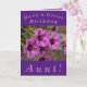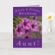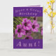Cartão de aniversário floral para tia com flores de gerânio lindíssimas roxas. Todo texto pode ser facilmente personalizado.