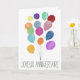 Balões coloridos do cartão de aniversário francês. Esta placa de balão colorida é uma pintura de aquarela desenhada à mão original. Este cartão também está disponível em outras línguas que não o inglês