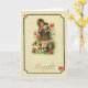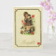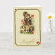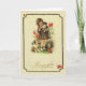 Cartão francês retro/do vintage aniversário. Menina bonita com seus gato e filhote de cachorro! Fête de Bonne! Feliz aniversario!
