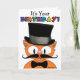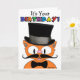 Este cartão de aniversário bonito mostra o gato de bigode do cartoon Señor Gato no chapéu de cima e gravata de arco preta! "É hora de comemorar no estilo!", diz dentro de cartas. Senor Gato de Aaron Gibbs.