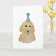 Feliz Aniversário deste bonitinho Goldendoodle vestindo um chapéu de festa! Cartão perfeito para amantes de cães (especialmente rabisco)!