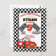 Convite de Aniversário de Carro de Corrida Vermelho Infantil Xadrez Preto e Branco