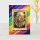 Cartão de aniversário judeu LGBTQ+ com uma saudação de aniversário feliz tradicional na frente. Três balões azuis brilhantes dentro com a mensagem, Mazal Tov! "Ad Meha VeEsrim" que interpreta até 120 anos. Mude como desejar com as ferramentas de edição do Zazzle.
