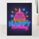 Cartão de Aniversário - Luzes de Neon de Bolo de A