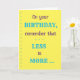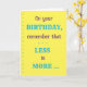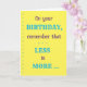 Uma reviravolta humorística no aforismo "menos é mais", que teve origem no poema de Robert Browning "Andrea del Sarto", esta mensagem de aniversário encoraja "menos contenção, mais bolo!"