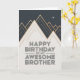 Celebre o dia especial do seu irmão com este cartão de aniversário de na moda e coração, com tipografia ousada moderna e elementos elegantes de design e marinho de ouro. A frente exibe a mensagem "Feliz Aniversário ao Meu Irmão Incrível" em uma fonte limpa e confiante, cercada por linhas geométricas sutis ou sotaques dourados. A design combina a sofisticação moderna com energia fraterna — forte, divertida e cheio de personalidade