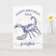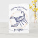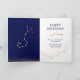 O interior do cartão de aniversário da Escorpião é projetado com um fundo corajoso dos azuis marinhos e uma constelação estrelado da Escorpião bonita da folha de ouro do falso. O cartão de aniversário é personalizado com o nome do receptor e a data de nascimento, assim como um ponto para sua própria mensagem personalizada do aniversário no interior.