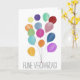 Cartão de aniversário holandês Balões coloridos. Esta placa de balão colorida é uma pintura de aquarela desenhada à mão original. Este cartão também está disponível em outras línguas que não o inglês