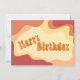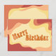 Um cartão de aniversário ondulado de cores quentes no estilo dos anos 70.