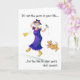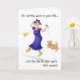 Um cartão de aniversário leve para uma mulher mais velha com caneta e pintura de lavagem de uma mulher dançando e cantando no Festival Glastonbury (daí os solteiros). Ela está segurando um microfone e um pequeno cachorro está se juntando. O texto da frente diz: "Não são os anos da sua vida, mas a vida dos seus anos que conta". A mensagem dentro é "Parabéns", mas você pode personalizá-la para torná-la um cartão de aposentadoria também.