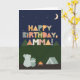 Cartão de Aniversário para Amma. Você chama sua mãe de Amma, não de mãe. (Amma significa mãe em Urdu, Hindi, Tamil, Islandês, Malaio, Kannada, Telugu, & Sinhalese.) Então dê à sua Amma um cartão de aniversário feito especialmente para ela! Esta bela carta à porta fechada é perfeita para qualquer Amma que adora acampar, natureza, o exterior, e olhar para as estrelas no céu noturno com os seus filhos. Este cartão de aniversário inclui um urso-mãe e um urso-criança sentados ao ar livre por uma fogueira e uma tenda na natureza olhando para as estrelas no céu e nas montanhas. O texto bonitinho e moderno estilo escandinavo diz: Feliz aniversário, Amma! Torne este cartão personalizável! Clique em "Editar Design", "Dentro Inferior/Direita: Texto e imagens", "Texto" e "Adicionar texto" para escrever a sua própria mensagem personalizada e personalizada no dentro Amma!