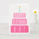 Cartão de aniversário para Bà. Se você chamar seu pai de Ba em vez de Pai, este cartão de aniversário é perfeito para ele. (Bà significa pai em chinês mandarim.) Seu ba também vai adorar o design cor-de-rosa verde deste cartão de aniversário com um bolo de aniversário que diz "Feliz aniversário Bà!" Torne este cartão personalizável! Clique em "Editar Design", "Dentro Inferior/Direita: Texto e imagens", "Texto" e "Adicionar texto" para escrever a sua própria mensagem personalizada e personalizada em Bà dentro!