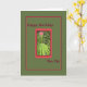 Cartão verde médio com uma fronteira vermelha que envolve plantas e flores. Cartão perfeito para enviar ao seu amigo Caneta.