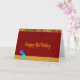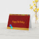 Rostos bonitos sentados em uma prateleira acima, dois rostos aqua roxos coloridos abaixo.design inclui Red/stripes e Ochre. Texto "Feliz Aniversário" na próxima página "Tenha um Aniversário" na próxima P "Melhores Desejos para hoje"