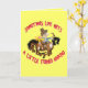 Um cavaleiro confuso para trás no cartão de aniversário de cavalo. Cartão de condolências