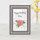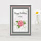 Cartão de aniversário para a sua Mãe com um fundo de rosas desbotadas, por efeito, e uma bonito rosa rosa sobre o fundo. A fronteira e o escrevendo são uma cinza média. Obrigados à Hungryjpeg para alguns dos elementos do design.