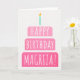 Cartão de aniversário para Magriza. Se você chamar sua mãe de Magriza em vez da mãe, este cartão de aniversário é perfeito para ela. (Magriza significa mãe em Isizulu / Zulu.) Sua magriza também vai adorar o design cor-de-rosa gradiente ombre deste cartão de aniversário com um bolo de aniversário que diz "Feliz aniversário Magriza!" Torne este cartão personalizável! Clique em "Editar Design", "Dentro Inferior/Direita: Texto e imagens", "Texto" e "Adicionar texto" para escrever a sua própria mensagem personalizada e personalizada no Magriza dentro!