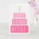 Cartão de aniversário para Mitera. Se você chamar sua mãe Mitera em vez da mãe, este cartão de aniversário é perfeito para ela. (Mitera significa mãe em grego.) Sua mitera também vai adorar o design cor-de-rosa gradiente ombre deste cartão de aniversário com um bolo de aniversário que diz "Feliz aniversário Mitera!" Torne este cartão personalizável! Clique em "Editar Design", "Dentro Inferior/Direita: Texto e imagens", "Texto" e "Adicionar texto" para escrever a sua própria mensagem personalizada e personalizada para o Mitera dentro!