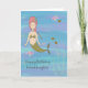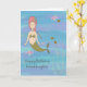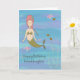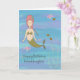 Cartão de aniversário para a neta com uma Sereia fofa no mar azul com peixes e gramíneas. O fundo do mar é pintado manualmente em diferentes azuis, verdes e púrpuras. Obrigados à hungryjpeg para alguns dos elementos comprados no design.