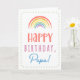 Você chama seu avô de papai, não vovô. Imaginem como papai ficará animado em receber um cartão de aniversário endereçado especialmente a ele! O teu pai também vai adorar o design do arco-íris, bonito e inspirado na água, que diz "Feliz aniversário Papá!" Torne este cartão personalizável! Clique em "Editar Design", "Dentro Inferior/Direita: Texto e imagens", "Texto" e "Adicionar texto" para escrever a sua própria mensagem personalizada e personalizada no Papa dentro!