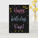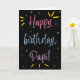 Você chama seu pai de Papi, não de Pai. Imagine como Papi ficará animado ao receber um cartão de aniversário endereçado especialmente a ele! Seu papi também vai adorar o design de inspiração colorida para fogos de artifício deste cartão (amarelo, rosa, azul e roxo em um fundo preto) que diz "Feliz aniversário, Papi!"