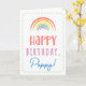 Você chama seu avô de Poppy, não vovô. Imaginem como Poppy ficará entusiasmado em receber um cartão de aniversário endereçado especialmente a ele! Seu papoila também vai adorar a fofa design do arco-íris, inspirada na água, que diz "Feliz aniversário Poppy!" Torne este cartão personalizável! Clique em "Editar Design", "Dentro Inferior/Direita: Texto e imagens", "Texto" e "Adicionar texto" para escrever a sua própria mensagem personalizada e personalizada no dentro de cópia!