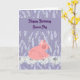 Cartão de aniversário para porcos de companhia numa lavanda e design branco com ervas daninhas florais em branco sobre fundo lavanda. O porco cor-de-rosa está deitado numa cama de renda suja. Pode ser usado para adultos ou crianças. As palavras na dentro podem ser alteradas. Obrigados para Pixabay e Creative Fabrica para alguns dos elementos do design