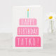 Cartão de aniversário para Tatko. Se você chamar seu pai Tatko em vez de Pai, este cartão de aniversário é perfeito para ele. (Tatko significa pai em búlgaro.) Seu tatko também vai adorar o design cor-de-rosa verde deste cartão de aniversário com um bolo de aniversário que diz "Feliz aniversário Tatko!" Torne este cartão personalizável! Clique em "Editar Design", "Dentro Inferior/Direita: Texto e imagens", "Texto" e "Adicionar texto" para escrever a sua própria mensagem personalizada e personalizada no dentro de Tatko!