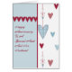 Cartão de aniversário para sua tia especial e seu marido com corações vermelhos e leves em um fundo branco e teal. Obrigados à hungryjpeg para alguns dos elementos da design.