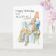Um Cartão de Aniversário para um homem, "de todos nós", com um homem a relaxar com o seu jornal e o seu gato e cão, a partir de uma ilustração com aquarelas feita por Judy Adamson. Sinta-se livre para editar ou excluir o texto e a solicitação do dentro e as alterações no texto do cobrir frontal através da minha loja.