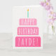 Cartão de aniversário para Zayde. Se você chama seu avô Zayde em vez de vovô, este cartão de aniversário é perfeito para ele. (Zayde significa avô em iídiche.) O seu zayde também vai adorar o design cor-de-rosa gradiente ombre deste cartão de aniversário com um bolo de aniversário que diz "Feliz aniversário Zayde!" Torne este cartão personalizável! Clique em "Editar Design", "Dentro Inferior/Direita: Texto e imagens", "Texto" e "Adicionar texto" para escrever a sua própria mensagem personalizada e personalizada no dentro Zayde!