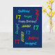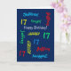 Que cartão de boas-vindas maravilhoso e personalizado para um 17º aniversário ou qualquer outra ocasião. No cobrir, Nome e Idade se repete em diferentes fontes e cores em um fundo azul marinho. Fácil de personalizar - apenas MUDE NOME, IDADE e OCASIÃO EM UM LUGAR. Suporta até 9 caracteres. Um cartão de aniversário colorido e divertido. Crianças, adolescentes e adultos vão adorar! Também é fácil modificar o texto dentro, se desejado. Todos os Direitos Reservados © 2014 Marcia Socolik.