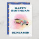 Cartão de aniversário de estilo retroativo que pode ser personalizado com qualquer nome ou mensagem. Isso também pode ser comprado para qualquer um que seja um amante de carro retrô. Um simples design com um fundo de abertura de cor d'água pastel e uma ilustração de carro retrô vermelho e amarelo. Isso também inclui um design no estilo de carro retrô perfeito no verso da placa. Veja nossa loja e outras coleções de design.