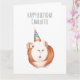 Esta porquinha-da-índia feliz é uma saudação de aniversário incrivelmente fofa para seu filho, amigo, qualquer amante de aniversário, jovem e carinhosa receptora! Este porquinho gengibre está vestindo seu chapéu de festa stripy multicolorido favorito com pompom no topo e está apenas esperando para se divertir. Roda, Roda! Personalizou esta saudação de aniversário com o nome do seu amigo ou amado. Confira DabbleArtByHelen para ver outros produtos que contêm esta cobaia e outros caracteres amáveis e divertidos.