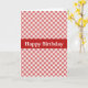 Cartão De Aniversário Com Padrão De Gingham Vermelho. Adicione texto de cobrir para ajustado da sua ocasião. ©Janet Palaggi