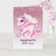 Este cartão de design moderno e tendência com tema de unicórnio alicórnio é perfeito para meninas que amam tudo relacionado a unicórnios, rosa, dourado e flores. Você pode editar o texto para aniversário, sweet16, Quinceanera, afilhada, neta, filha, sobrinha, melhor amiga ou qualquer relacionamento ou ocasião conforme desejado e, claro, adicionar o nome da menina. O interior é colorido (você pode alterar as cores) para um toque extra especial, mas ainda é claro o suficiente para você escrever com caneta. Para itens correspondentes, entre em contato com a Designer LeahG.