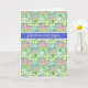 Um Cartão de Aniversário bonito com "Feliz Aniversário" em Norueguês e um padrão de primatas cor-de-rosa, azuis profundos e amarelos, de um design pintado à mão por Judy Adamson.