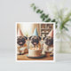 Uma ilustração engraçada e doce de filhotes com um bolo de aniversário e chapéus de festa de visto. Este é o cartão perfeito para os amantes de cachorros e cachorros pequenos. O cartão pode ser totalmente editado e personalizado para suas necessidades.
