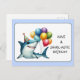 Faça o aniversário de alguém ser ainda mais especial com este divertido e vibrante cartão "Tenha um Aniversário Super Tubarão"! Com um tubarão brincalhão usando um chapéu de festa e segurando um monte de balões coloridos, este cartão é perfeito para celebrar aniversários com um toque de emoção. Adicione sua própria mensagem pessoal para tornar a celebração ainda mais memorável!