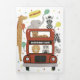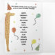 Este cartão de aniversário para crianças triplo com jogos mostra animais enchendo um ônibus para uma festa. Os animais incluídos são uma girafa, um elefante, zebras, rinoceronte, leão, chita e hipopótamo. Os jogos apresentam uma busca de palavras, que contém "Parabéns" como duas das palavras perto do centro, e um labirinto.