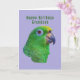 Esta arara verde é membro da família do papagaio e ele faz um cartão de cumprimentos coloridos para um neto.